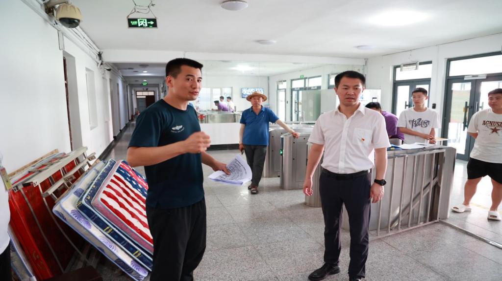 8月1日上午,学校党委书记郭伟东带领保卫处、总务处、基建办等部门相关人员对学校建筑等安全情况再次进行排查。
