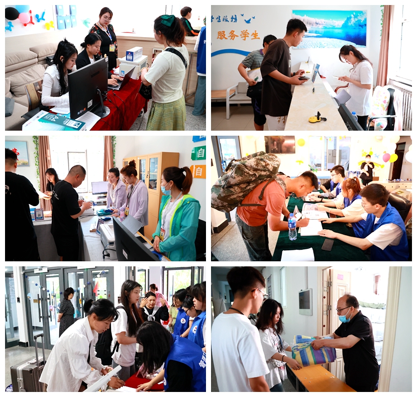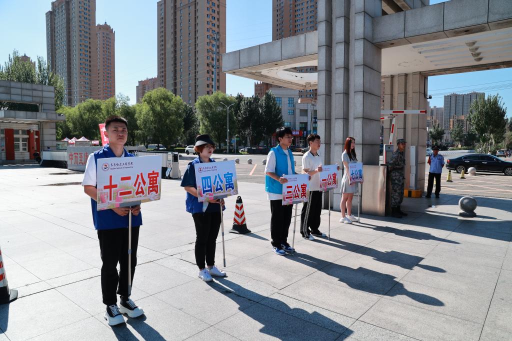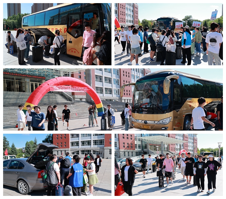 学校成立校内接待组、校外接站组等8个工作组,分别在齐齐哈尔火车站、火车南站、飞机场迎接新生,同时安排大巴车,从早8点开始,循环往返于学校和车站、机场,保证将新生安全送达学校。