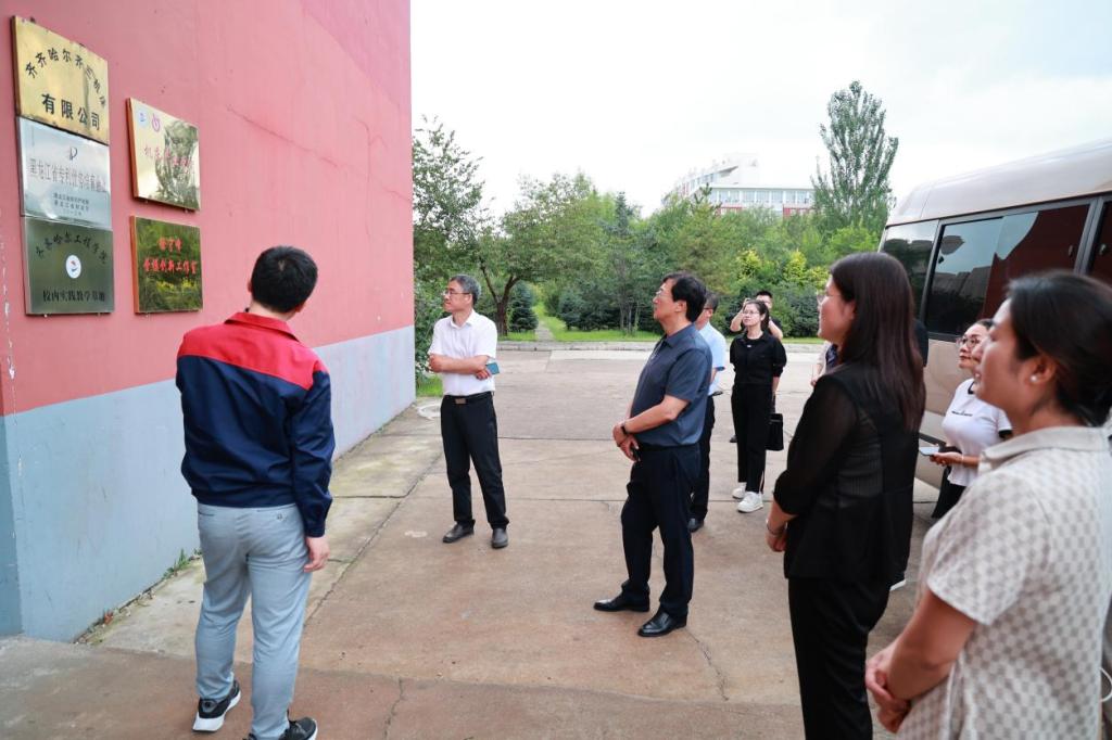 8月16日下午,由齐齐哈尔市教育局副局长王宽带队,牡丹江市教育局副局长宫建刚、牡丹江市经开区科技局局长高军、黑龙江农业经济职业学院现代物流管理专业主任赵春杰等多家单位领导组成的考察团一行十人到我校参观产教融合实践基地。副院长白雪、院长助理陈景鑫、教务处实践教学科康琦、陈茂松参加本次活动。