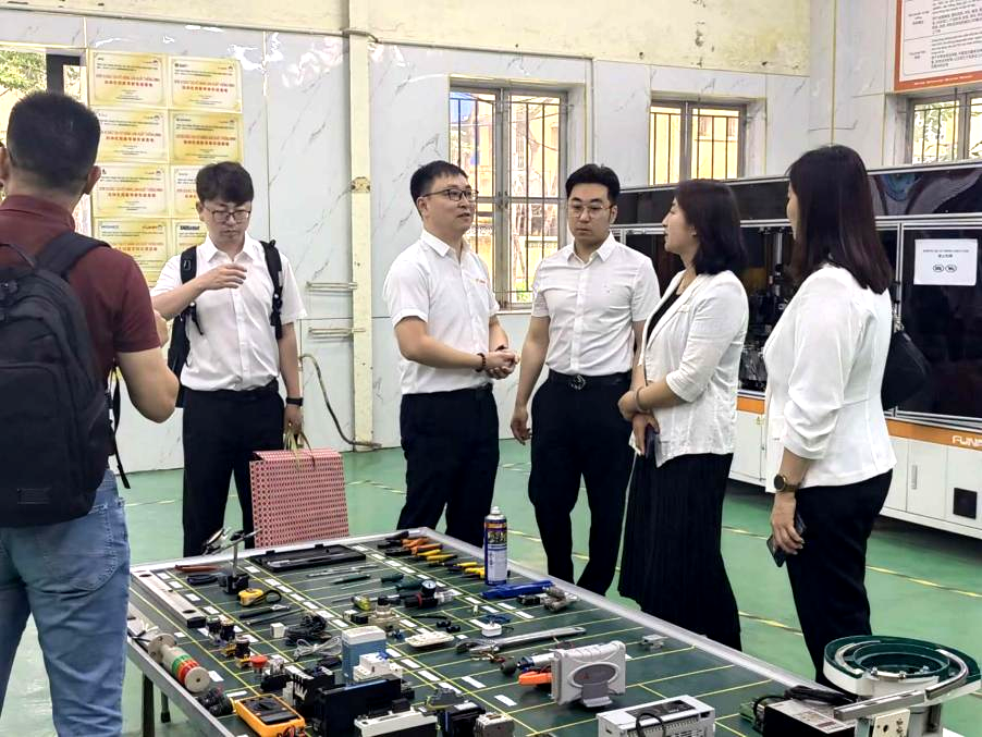 会后,考察团一行在苏州富纳艾尔科技越南有限公司总经理卢骏陪同下参观了富纳智能制造实训中心。