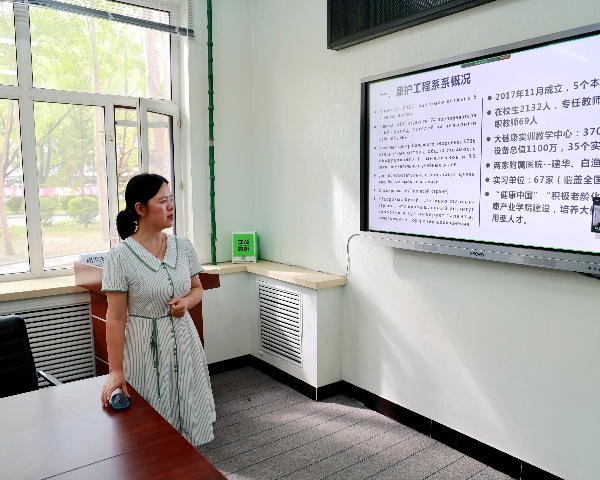 郭玲玲详细阐述了康护工程系的概况及人才培养特色,展示了学校在相关专业领域的优势与成绩。