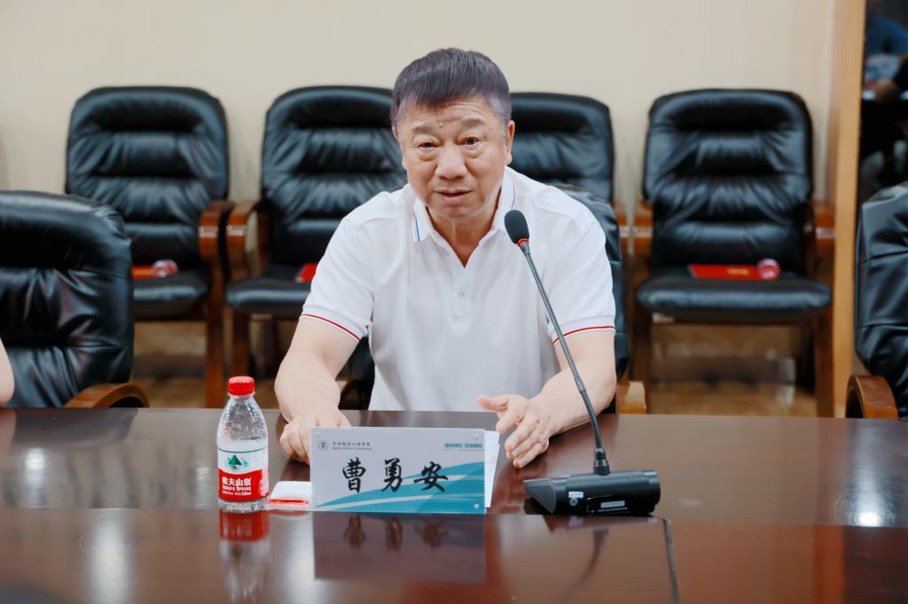 28日晚,学校在图书馆603会议室召开座谈会。曹勇安对史宝凤一行表示欢迎,并介绍了学校的办学历程、教育教学质量奖、干部考核以及学校未来发展方向,分享了学校托管三亚城市职业学院、甘南县职业技术教育中心的成功案例和取得的优秀成果。他表示,学校一直秉承政校企合作、产学研融合、教学做合一的人才培养模式,积极为地方经济和社会发展提供人才保障和智力支持,希望此次考察交流,进一步促进两校之间的合作与发展,推进双方教育事业再上新台阶。