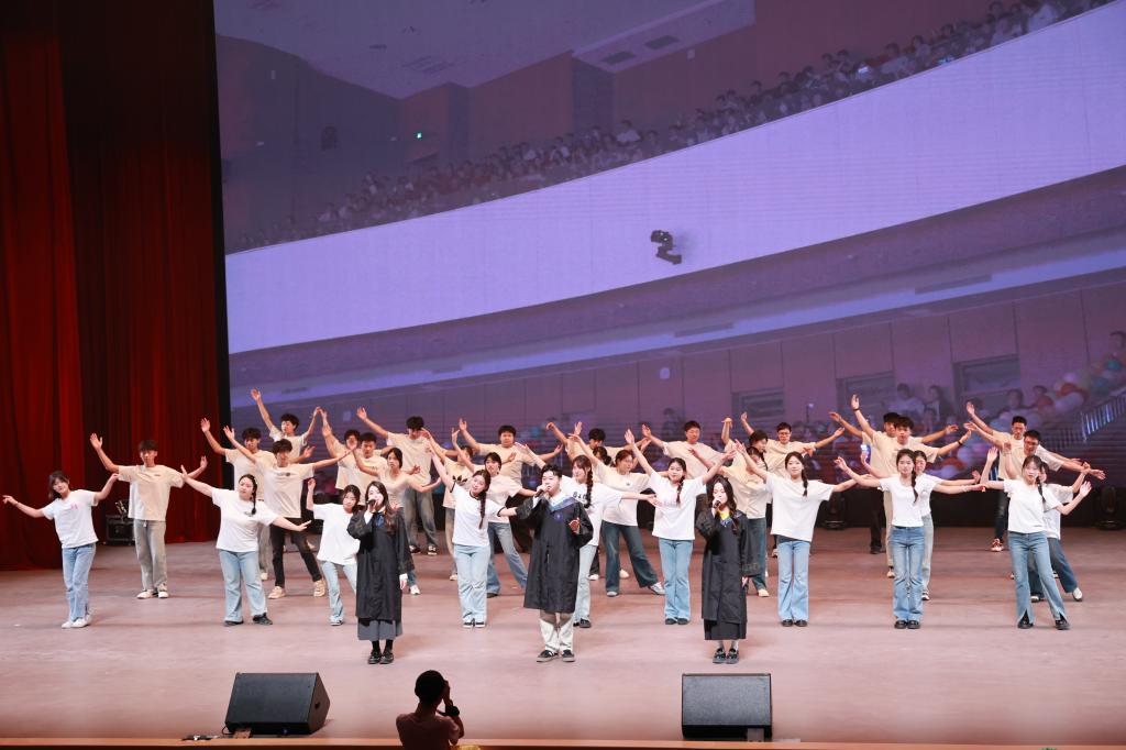 随后,朗诵《觉醒年代》,以历史题材为背景,参演学生用铿锵语言诠释不同时期的青年精神图谱;歌曲《致吾辈》,表演者以激昂的歌声唱出当代青年的担当与抱负,传递出积极向上的正能量,激励着毕业生们勇敢奔向未来。