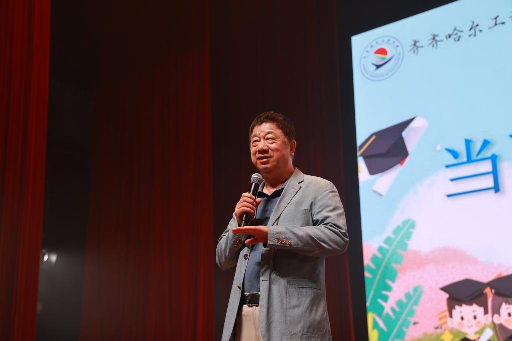 曹勇安在晚会上发表讲话,他回顾了学校的发展历史并展望了百年老校的美好愿景。他提到,学校文化对学生有着深远影响,期待学生未来能将学校文化传承至社会,并着重强调了教师岗位的神圣职责,指出教育工作者应“用生命影响生命,用智慧点燃智慧”,为社会培养出更多优秀人才。