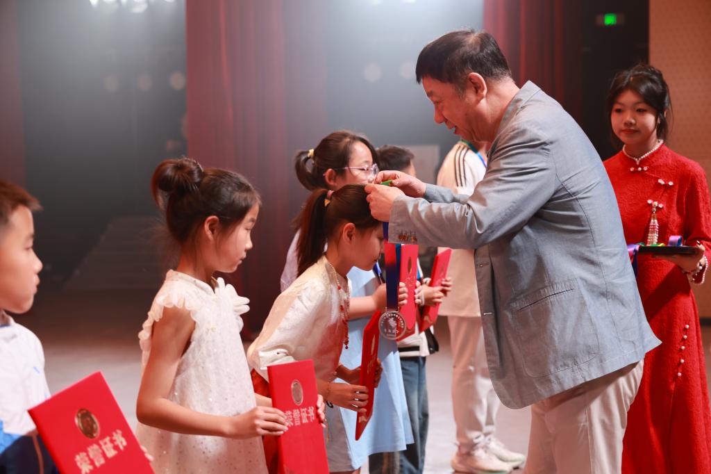 曹勇安教授为第七届丁香少年奖章获得者颁发丁香奖章和证书。