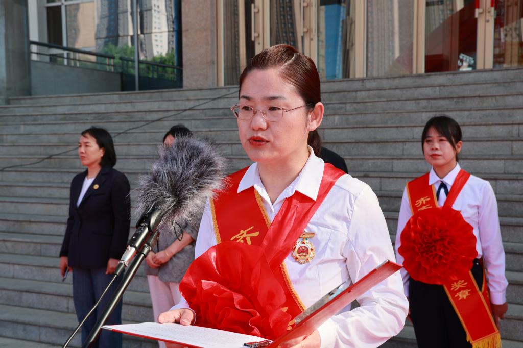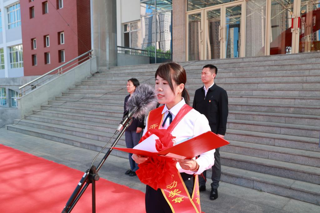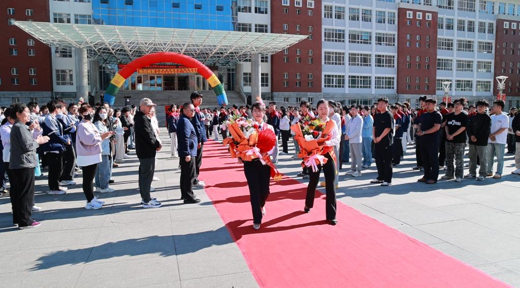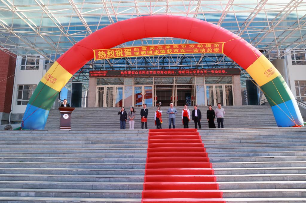 6月6日早,学校在明德广场隆重举行欢送仪式,热烈祝贺副校长、校党委委员白雪荣获“市劳动模范”称号、国产二区av麻豆党委书记、院长徐明荣获“市五一劳动奖章”。创校校长、理事长曹勇安携学校党政领导班子成员与全体师生代表600余人齐聚一堂,以庄严仪式致敬先进模范,凝聚奋进力量。学校工会委员、资产管理处处长张磊主持仪式。