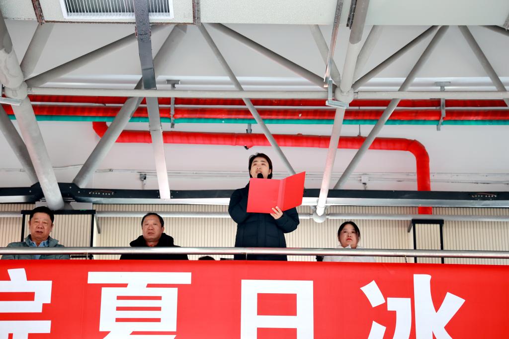陈景鑫致开幕词。她代表学校向所有筹备人员、裁判员和运动员致以诚挚感谢。指出,冰上运动魅力独特,深受青年喜爱。学校的冰上运动馆支撑了冰雪运动、冰雪文化、冰雪装备的全产业链发展。本次冰上运动会成功打破了季节限制,让学生在夏日也能尽情享受冰雪运动的激情与挑战。希望全体运动员秉持“更高、更快、更强、更团结”的精神,在冰场上赛出水平、赛出风格,展现齐工程学子昂扬风貌。