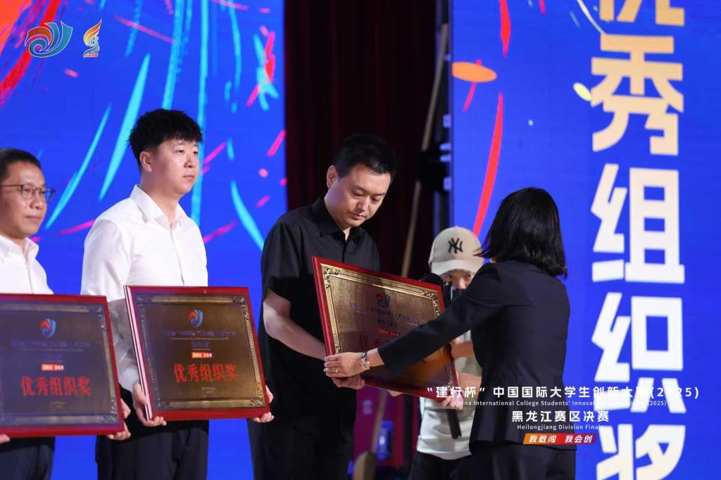 大赛开幕式上,创业学院院长单大海代表学校领取“中国国际大学生创新大赛(2024)黑龙江省赛区优秀组织奖”,该奖项是对我校上年度赛事组织工作的高度认可和权威认定,充分反映我校去年在赛事组织方面取得优异成绩和突出表现。