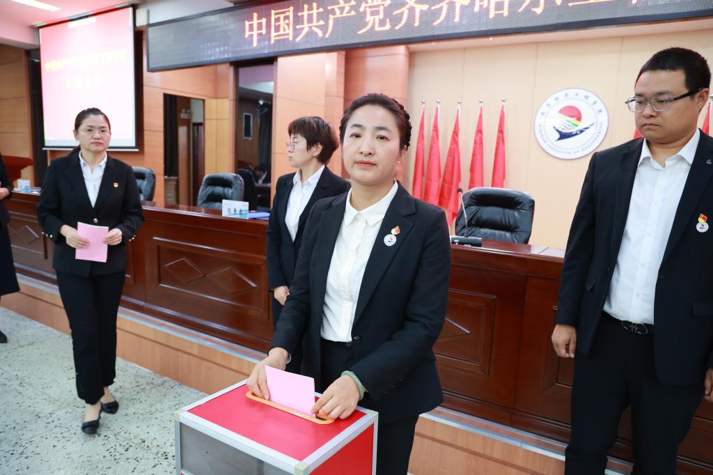 党委委员、党委组织部部长王丹宣读选票填写注意事项。