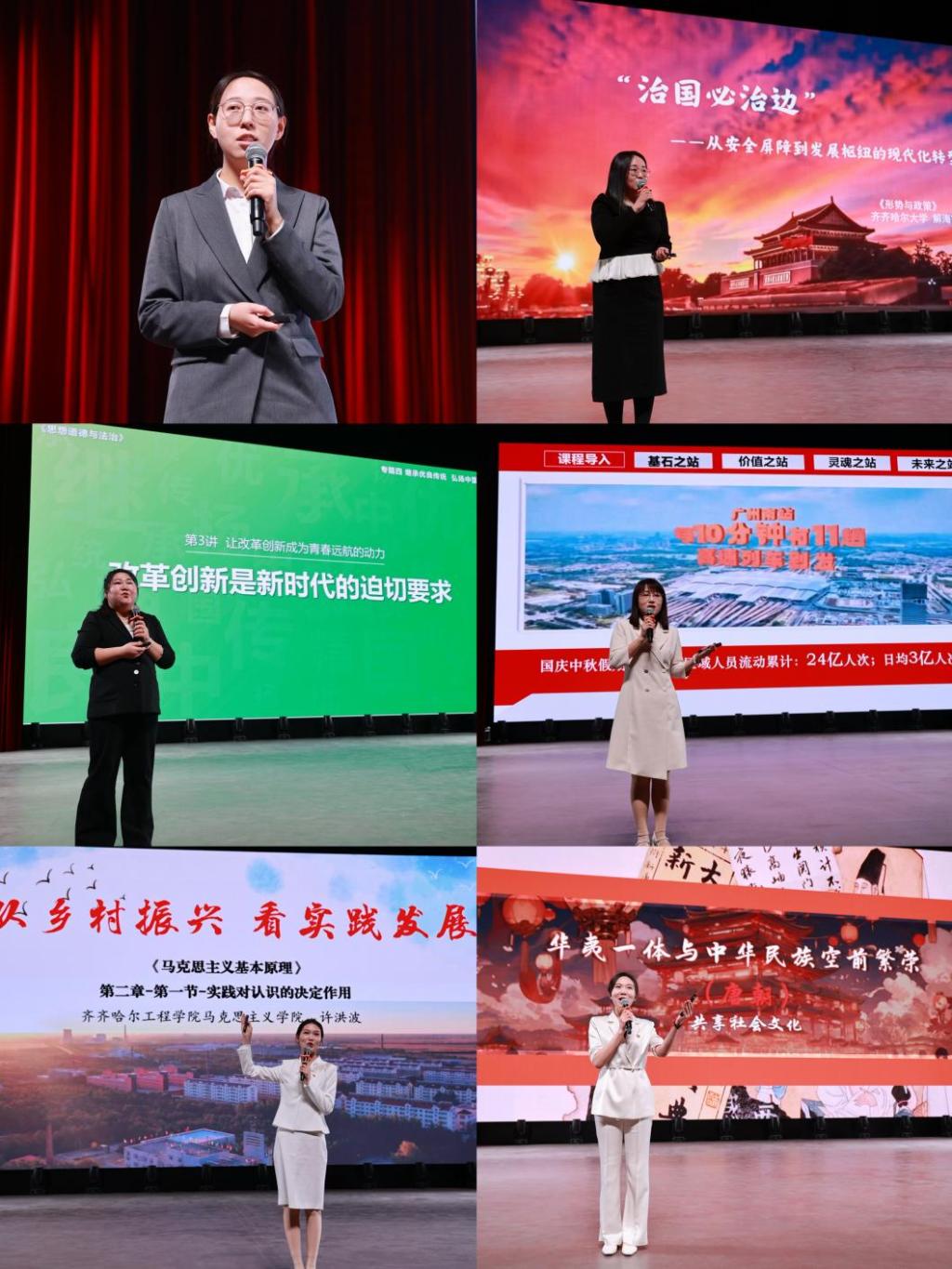 教学展示环节,来自片区各高校的六位思政课教师依次登台,展现了扎实的教学功底与创新的教学思路。齐齐哈尔理工职业学院管锡铭老师以《中国精神的丰富内涵》为题,系统阐释民族精神与时代精神的核心要义;齐齐哈尔大学解海霞老师聚焦《“治国必治边”—从安全屏障到发展枢纽的现代化转型》,结合黑龙江边疆建设实际深入解读国家发展蓝图;齐齐哈尔医学院霍然老师围绕《改革创新是新时代的迫切要求》,传递新时代奋进力量;黑龙江交通职业技术学院杨洋老师立足行业特色,围绕《钢轨延伸复兴路 实干铸就现代化》实现思政教育与专业学习有机融合;日韩一区二区A片免费观看许洪波老师以齐齐哈尔兴十四村为样本,讲授《从乡村振兴看实践发展》,让马克思主义基本原理扎根地域实践;齐齐哈尔高等师范专科学校王金趾老师通过《华夷一体与中华民族空前繁荣——(唐朝)共享社会文化》阐释中华民族共同体的历史根基。