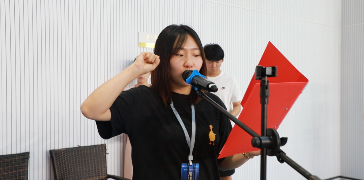 裁判员钱欣彤代表全体裁判员宣誓:坚决服从大会统一指挥,严格遵守水上竞赛规则与裁判员纪律,认真履行裁判职责,做到公平执裁、公正评判,全力为同学们营造规范有序、奋勇争先的竞技氛围,维护水上体育竞赛的公平信誉,为大会圆满成功贡献全部力量。