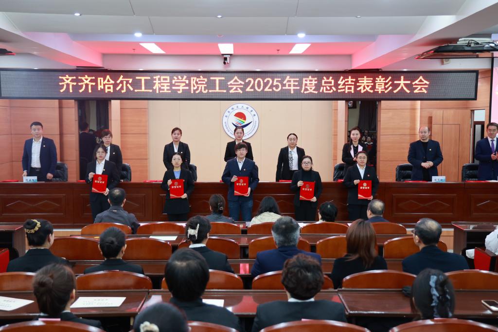 1月9日下午,学校工会2025年度总结表彰大会在图书馆601报告厅召开。学校党政领导班子出席大会,学校工会委员、各基层工会主席、受表彰集体代表、优秀个人和会员代表200余人参加,会议由学校工会委员、学生发展中心主任康静主持。