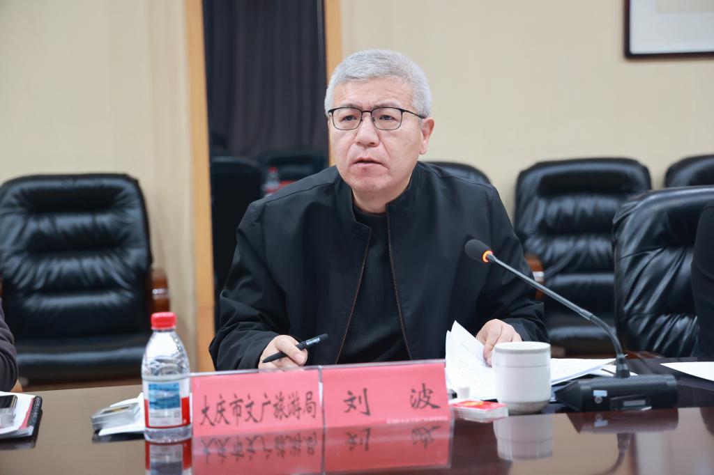1月14日下午,黑龙江省文化和旅游厅党组成员、副厅长蒋兴成率队来校,就文旅领域“十五五”重大工程项目谋划情况开展专题调研。调研组成员包括黑龙江省文化和旅游厅政策法规处处长于子洋、副处长吕明,齐齐哈尔市文广旅游局副局长陈凤才,大庆市文化广电和旅游局三级调研员刘波、产业发展科科长符浩、政策法规科副科长滕菲等。学校创校校长、理事长曹勇安,校长曹然彬,党委副书记、纪委书记、副校长陈景鑫,副校长白雪、副校长崔晓东、党委宣传统战部部长张苗出席座谈会。