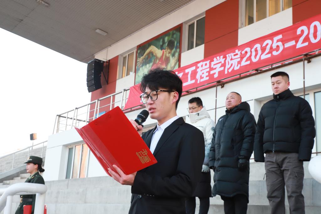陈景鑫作总结讲话。她首先向全体师生致以新学期的问候与祝福,在回顾学校发展成果的同时,结合“爱自己”这一网络热词,向全体师生提出三点殷切希望:一是以德立身,做信仰坚定的齐工程人。要坚守人生底色,在奋斗中锤炼品格、砥砺意志;二是以能立业,做本领高强的应用型人才。要勤学善思、知行合一,不断提升专业素养与实践能力,主动对接社会发展需求;三是以声传情,做校园形象的优秀传播者。要积极讲好齐工程故事,传播校园正能量,让更多人了解学校、认同学校、热爱学校。她号召全体师生以梦为马、不负韶华,凝心聚力、奋发作为,共同书写学校高质量发展的崭新篇章。
