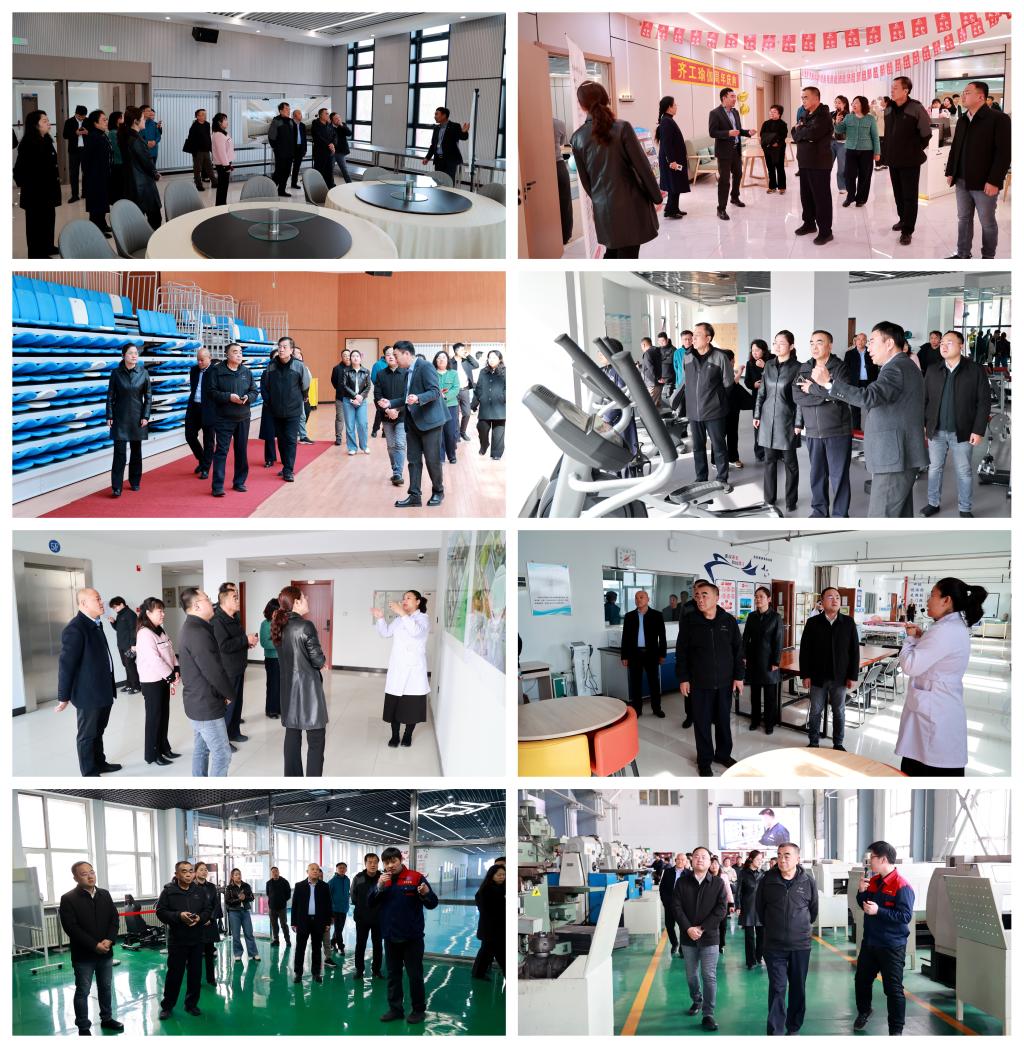 考察团在学校领导的陪同下参观了学校产教融合基地和校内实践教学场所,实地走访了人民会堂、游泳馆、儿童健康管理中心、药食同源馆、健身馆、体育馆、冰上运动馆及大健康教育省级实验教学示范中心、新能源汽车实训中心、齐三机床等地,详细了解了各场所的建设规模、功能定位、设备配置及教学应用情况,对学校鲜明的办学特色、完善的实践教学条件和优良的育人环境给予高度评价。