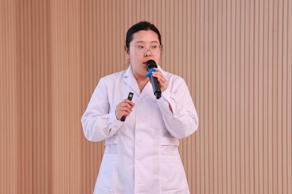 医学院助产学专业负责人马静以“从课堂到市场:小儿推拿微专业赋能学生创业”为题作经验分享。她从微专业的建设背景与目标、痛点解决与教学创新、成效呈现与发展路径三个方面,详细介绍了小儿推拿微专业在教学实践及学生创业等方面的探索与成果。