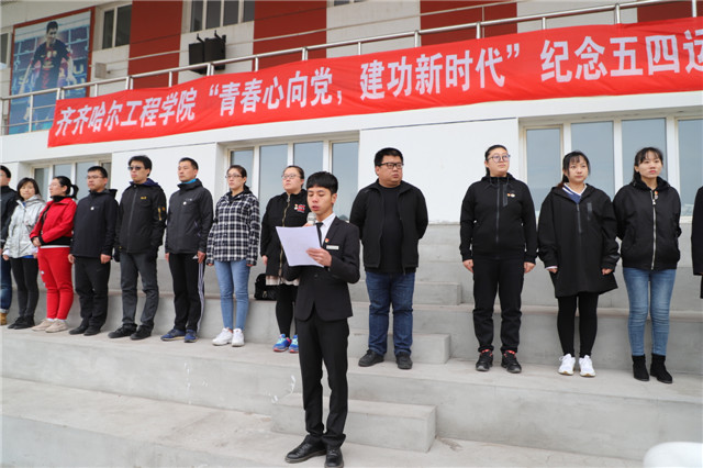 张振笋副院长在讲话中希望,齐工程学子要铭记五四精神,深入学习贯彻习近平新时代中国特色社会主义思想和党的十九大精神,自觉地以习近平新时代中国特色社会主义思想武装头脑,志存高远、砥砺奋进,铭记历史、奋发图强,做红色基因坚定的传承者和实践者,肩负起新时代赋予青年的时代责任和历史使命,在学院全力迎接本科教学工作合格评估中,在建功新时代的生动实践中,书写人生新篇章。