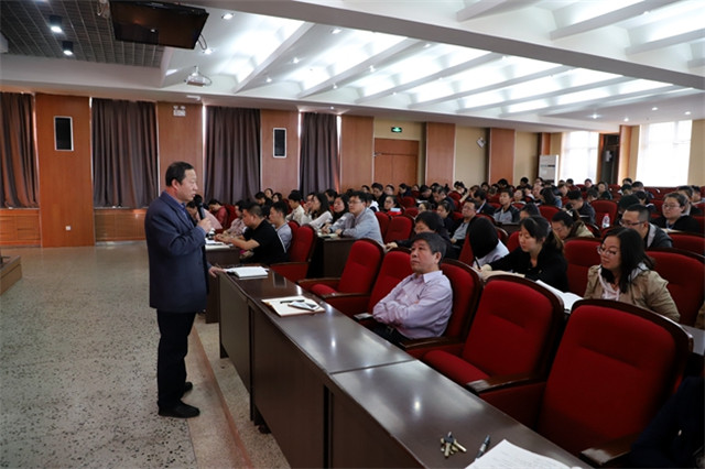 学院领导,全体干部、任课教师、辅导员及教务秘书等参加会议,评建办主任任志新主持会议。