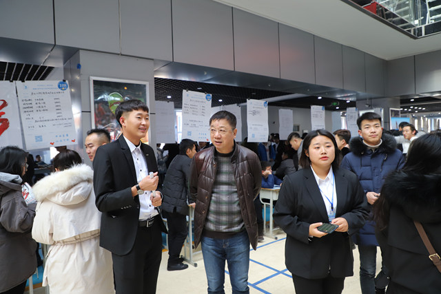 学院理事长曹勇安与院长曹然彬、党委书记李敏义等学院领导和全体干部出席此次活动,在现场看望鼓励组织活动的社团学生并与招聘企业人员进行交谈交流。