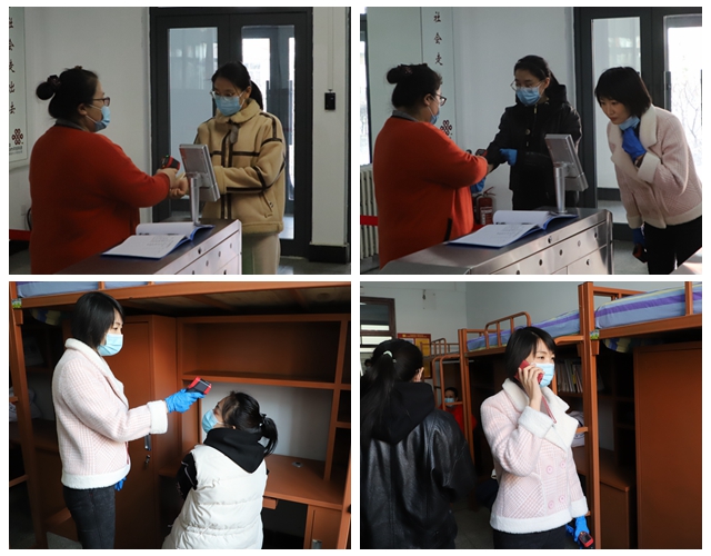 演练首先是“寝室测温”,辅导员测温后进入第三公寓,模拟进行体温晨检,发现某寝室内有一名学生体温超过37.3℃,辅导员复检确认后立刻报告校医、校领导,并立即将体温偏高的学生带到隔离室,并对同寝室人员采取相应安全措施。