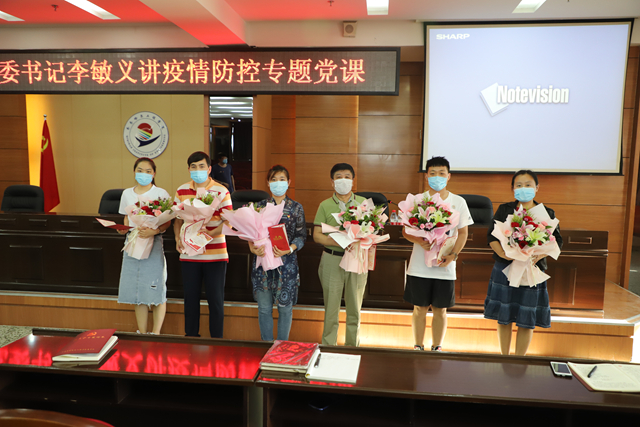 党课结束后,机关第一党支部、机关第二党支部和思政教学部党支部联合为6月份入党的6名党员庆祝政治生日,送上政治生日贺卡和花束,激励大家不忘初心、牢记使命,立足本岗,为党的教育事业作出更大的贡献!