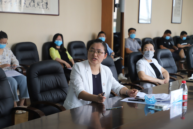 白雪副院长向验收评估组汇报了学校新学期开学防疫工作组织机构,健康排查,校园、教室、宿舍、食堂管理措施,以及物资保障、应急处置等工作的进展情况。