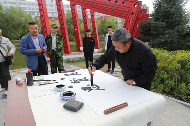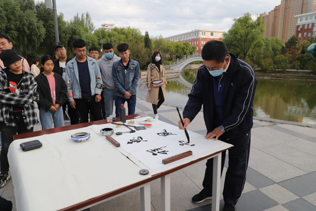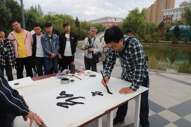 9月24日下午,由校党委宣传部与团委联合举办,齐工程书法爱好者协会承办的学校建校三十周年系列活动之“秋到易湖畔·墨香飘校园”——鹤城书法家齐工程笔会在我校举行。