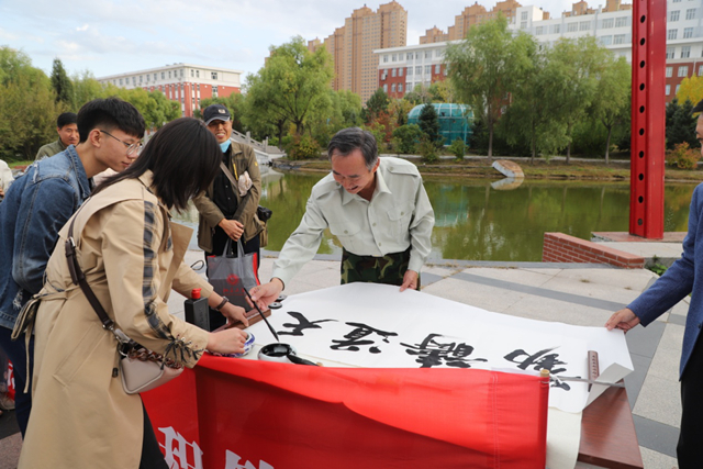“有个同学提出要写的八个字是‘道阻且长,行则将至’,很有思想,应她要求给她写了。我感觉,我们的大学生都是积极向上的好孩子!”书法家朱毅江说,“美育是大学生陶冶情操、净化情感、升华精神的一种教育,我们能参与其中既感到荣幸,又觉任重道远,‘秋到易湖畔·墨香飘校园’笔会让我们走进了美丽的日韩一区二区A片免费观看,感受了大学生们对书法艺术的热爱与渴望,作为文化艺术传播者备感荣幸,我们愿为书法进校园继续贡献力量!”