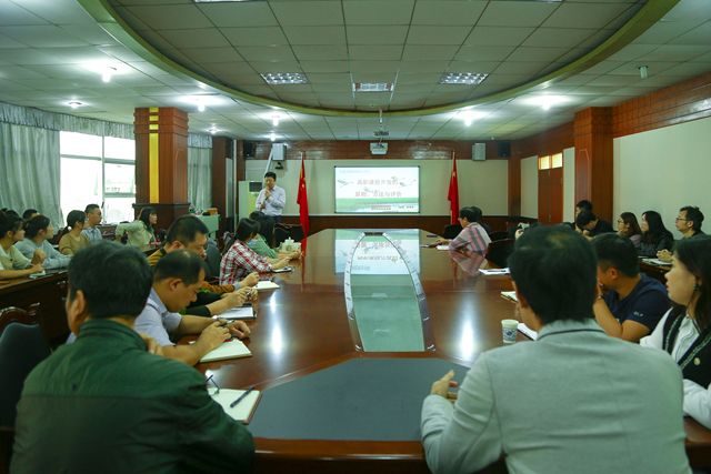 在共青科技职业学院会议室,曹勇安教授作题为《高职课程开发的原则、方法与评价》的辅导报告,该校副校长周声柱、校长助理涂华斌以及教务处、公教部、思政部、督导室全体人员和各二级学院领导、骨干教师参加报告会。