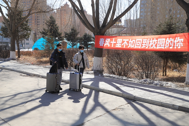 学校领导高度重视春季学期开学各项工作,深入到学校食堂、学生公寓等地现场指导,关心关怀学生返校入住、用餐等情况。党委宣传部、学生工作处、总务处、教务处、保卫处等部门密切配合,营造了浓浓的校园环境氛围。在校园里道路两旁、主要经过区域“迎学子归 开栋梁门”、“春风进校园 活力易湖畔”、“意气风发归来 春花满园盛开”、“告别四学期的过往 跨入二学期的向往”、“春风十里不如回到校园的你”等标语表达了学校对学子回家的热切欢迎。图书馆门前电子显示屏轮播着“美丽的校园张开臂膀,热烈欢迎同学们踏春而归!”等欢迎标语和疫情防控要求。图书馆大厅大屏幕播放着欢迎学生返校和新冠肺炎疫情防控宣传片。校园调频台播放着欢迎学子归家等主题歌曲和防疫知识,渲染了校园气氛。