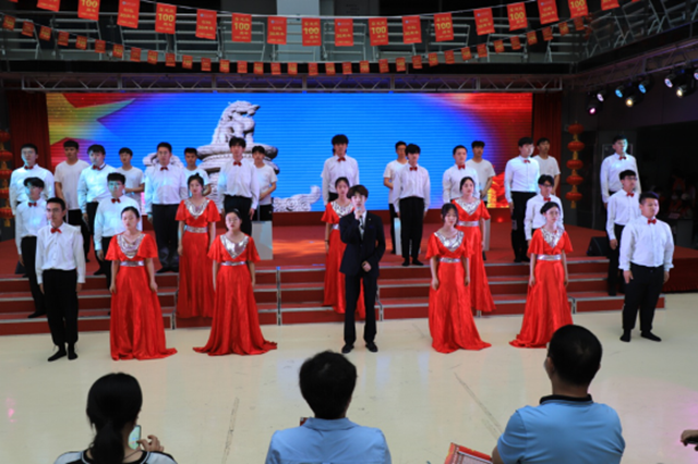 最后,机电工程系的合唱《没有共产党就没有新中国》气势如虹,把整场文艺汇演推向了高潮,也为演出画上了圆满的句号。