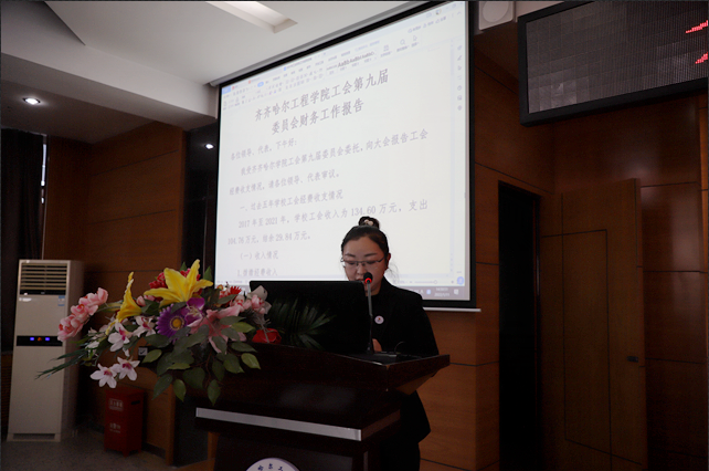 财务处会计胡思霞作学校工会九届委员会财务工作报告,通报了学校工会在九届委员会期间的财务收支情况。