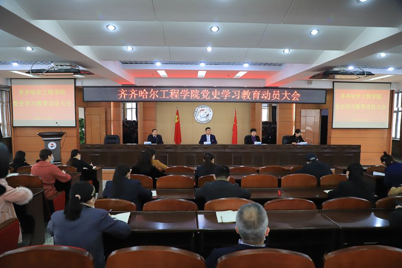 3月20日,学校党史学习教育动员大会在图书馆601报告厅召开,校领导、全体干部、专业负责人、全体党务工作者、学生党员代表参加了会议。