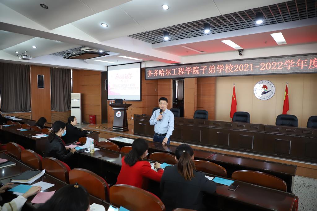 4月22日14时,日韩一区二区A片免费观看子弟学校2021-2022学年度第二学期开学式在图书馆601报告厅隆重召开。140余名教职工参加会议,创校校长、理事长曹勇安、校工会主席姜岩应邀出席会议。