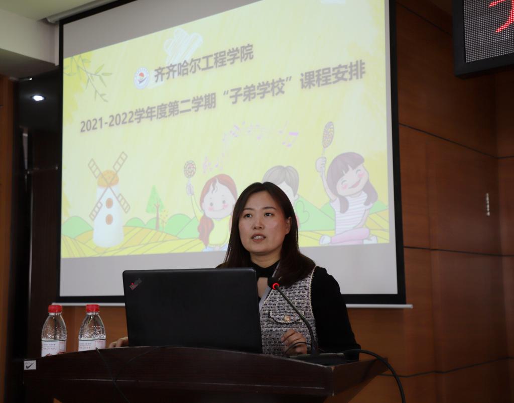 子弟学校副校长、学校创业学院副院长、学生发展中心负责人康静介绍了子弟学校2021-2022学年度第二学期的开课情况。