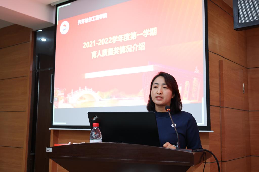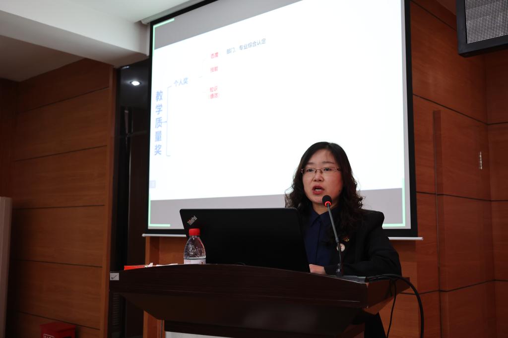 会上,教务处处长张静作了2021-2022学年第一学期教学质量奖励情况的汇报,具体介绍评定的标准、原则及评定结果,同时总结上一届教学质量奖提出的三个导向的达成情况,并指出本学期教学质量评定的导向是重质量和过程。