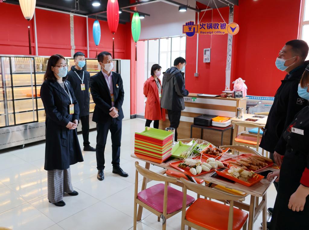 5月12日上午,学校党委书记郭伟东、副院长白雪及相关部门负责人深入教学区、教师办公室、快递驿站、洗浴中心、超市和餐饮等区域,对学校进行防疫工作大检查。