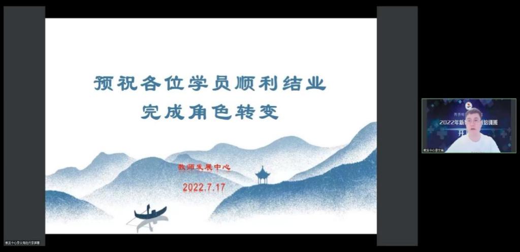7月17日晚,学校2022年度新教师培训班开班仪式在线召开,副院长张振笋、教师发展中心主任冯洁、副主任李文禹出席,124名新教师参加。