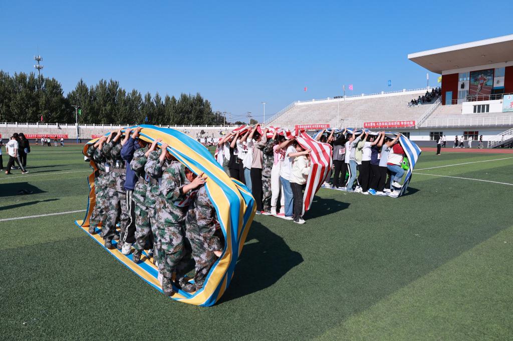 伴随着雄壮激昂的《运动员进行曲》,由国旗方队、教官方队、校旗方队、标语牌方队、红旗方队、花束方队、彩球方队、裁判员方队、教工方队、各系方队组成的37个代表队迈着整齐的步伐,迎着初升的朝阳,带着灿烂的笑容依次通过主席台,接受检阅。他们英姿飒爽、口号嘹亮,展现了团结奋进、昂扬向上的精神风貌,表达了全体师生对体育运动的热爱之情和对党的二十大胜利召开的美好祝愿。