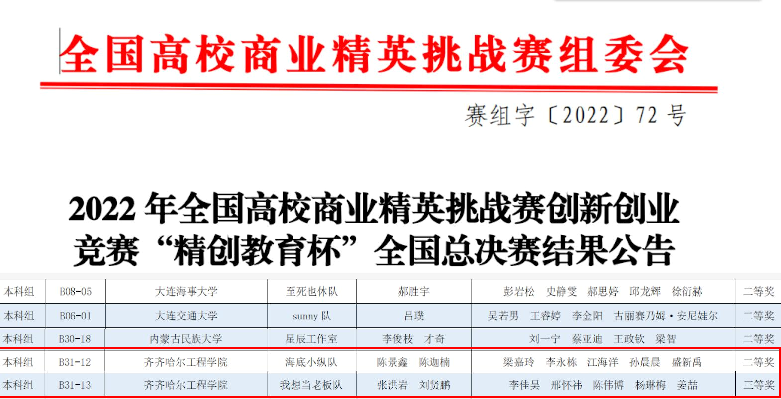 10月26日,全国高校商业精英挑战赛全国决赛成绩公布,我校管理工程系电子商务专业代表队喜获二等奖一项、三等奖一项的佳绩;同时,区域赛(省级赛)也有二等奖两项,三等奖四项的成果。