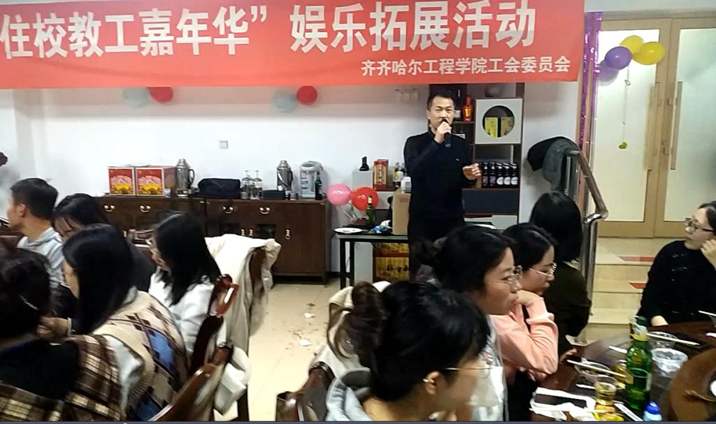 为丰富学校住校教工的业余生活,增强教师团队的凝聚力、向心力和执行力,促进教工间的沟通与协作,11月11日晚,学校工会在百草餐厅二楼举行“在校教工嘉年华活动”。学校党委书记郭伟东、工会主席姜岩、各基层工会主席及住校教师参加。