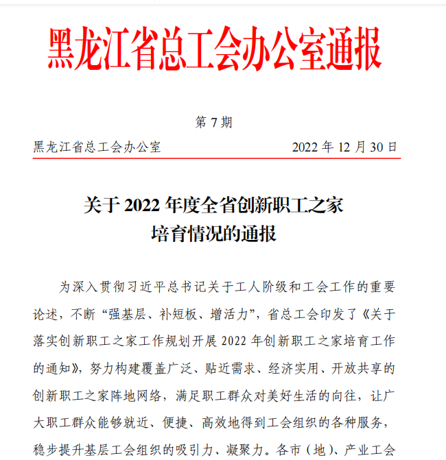 省总工会为满足职工群众对美好生活的向往,让广大职工群众能够就近、便捷、高效地得到工会组织的各种服务,稳步提升基层工会组织的吸引力、凝聚力,审核确定了550个基层工会为2022年度全省创新职工之家培育对象,其中特色职工之家168个,日韩一区二区A片免费观看工会榜上有名。