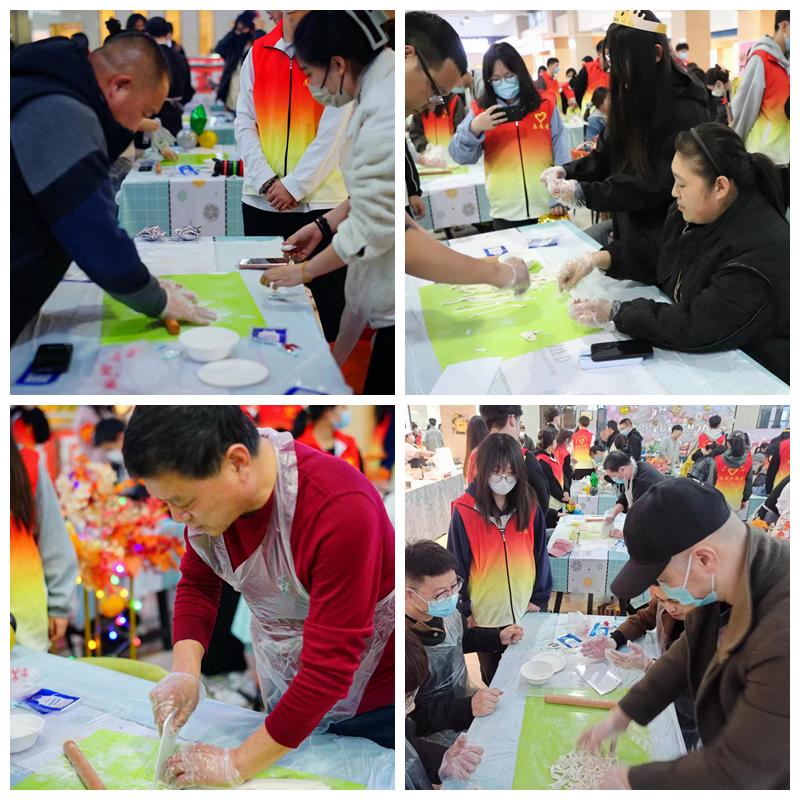 辅导员老师代表和生涯导师代表为过生日的学生现场亲手制作美味的生日面,大家一起分享、品尝,洁白晶莹的面条象征着幸福健康吉祥,也代表了学校对大家最美好的祝愿。