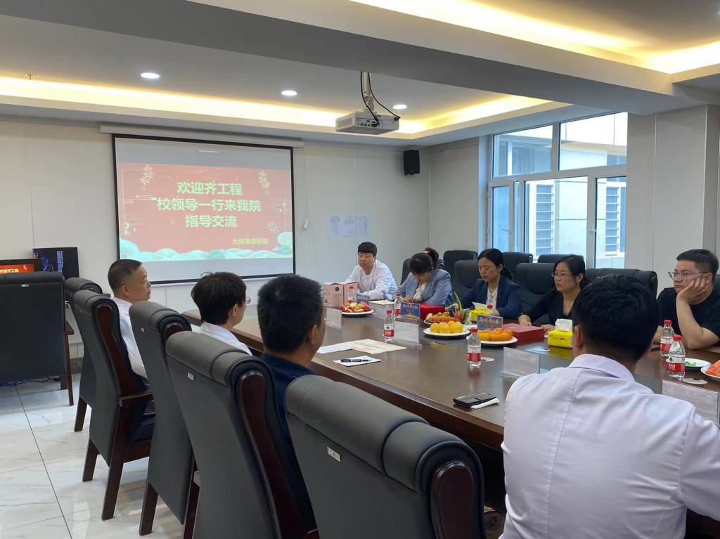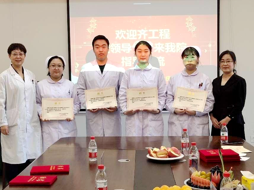 5月13日,学校教务长张静、教务处副处长李文禹、实践教学科科长康琦与护理系负责人郭玲玲等人深入健康与护理系大庆德康医院实验班进行走访与调研,大庆德康医院副院长李宏、康复科主任郭惠文等相关人员对我校来访人员表示欢迎。