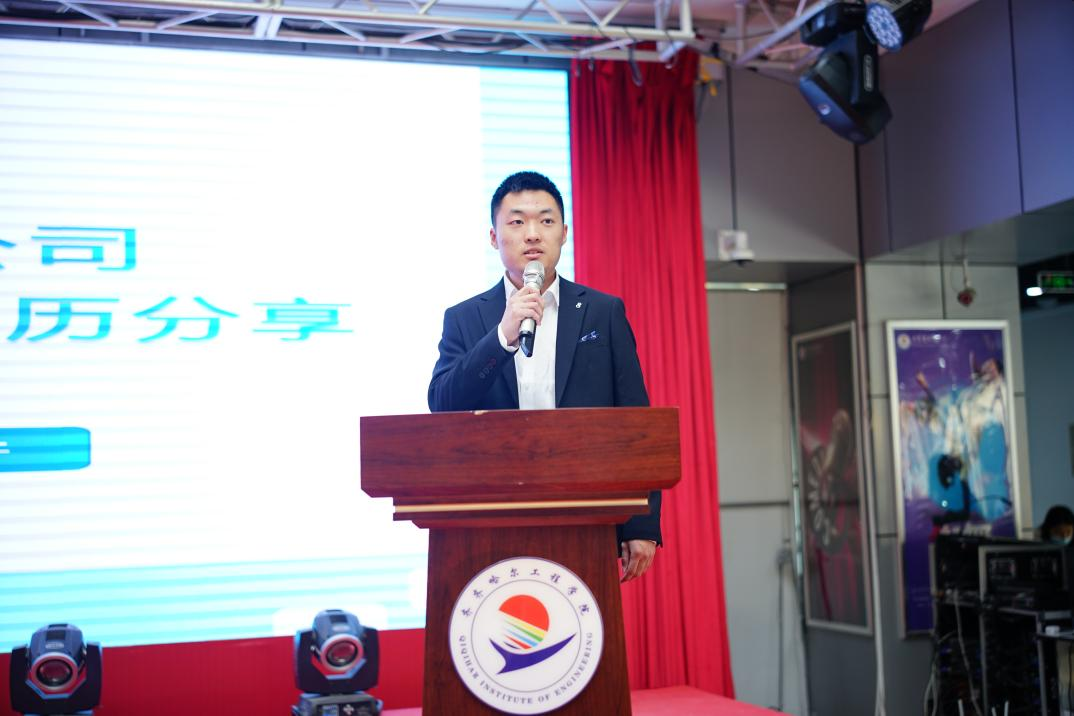 本次启动仪式的赞助方齐齐哈尔市业升科技集团有限公司法人机械202班陈思行同学,也为大家带来他的创业故事分享。