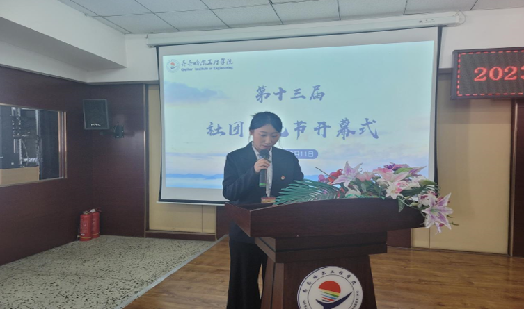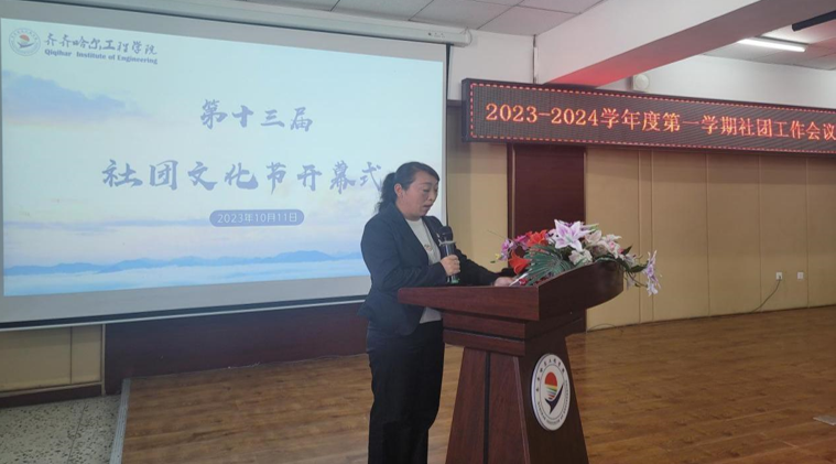 团委副书记王雪老师宣读《关于举办第十三届社团文化节通知》,并鼓励各位社团负责人,积极参与社团活动,提高自身综合素质,希望社团能通过此次文化节展示出各社团的风采和实力。