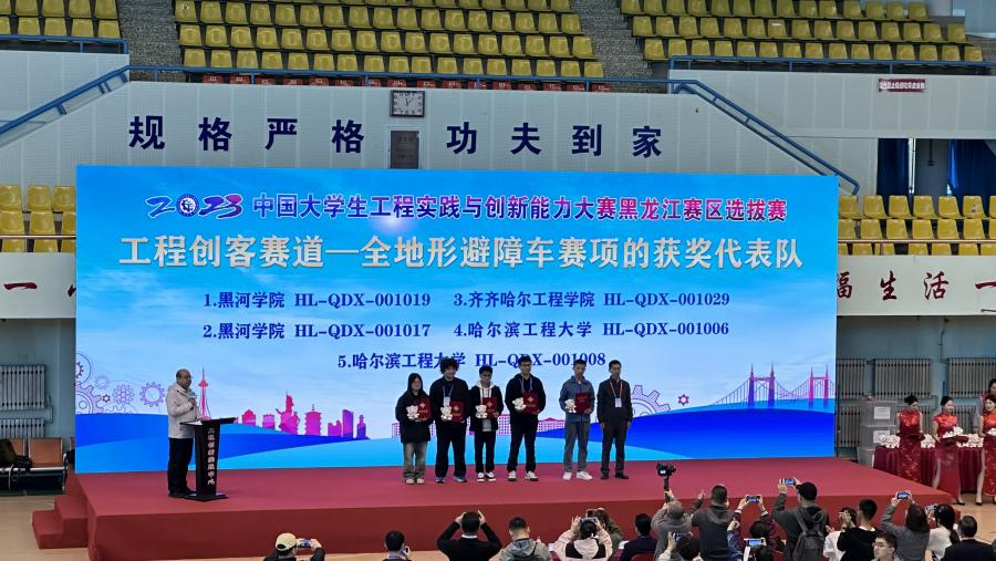10月14日至15日,2023年中国大学生工程实践与创新能力大赛黑龙江赛区在哈尔滨工业大学举行,学校机电工程系汽车服务工程专业学生在邓敏老师的带领下,与哈工大、哈理工、哈工程等高校学生同台竞技,李治泽经过激烈的角逐,在全地形避障车赛项目上取得了特等奖。