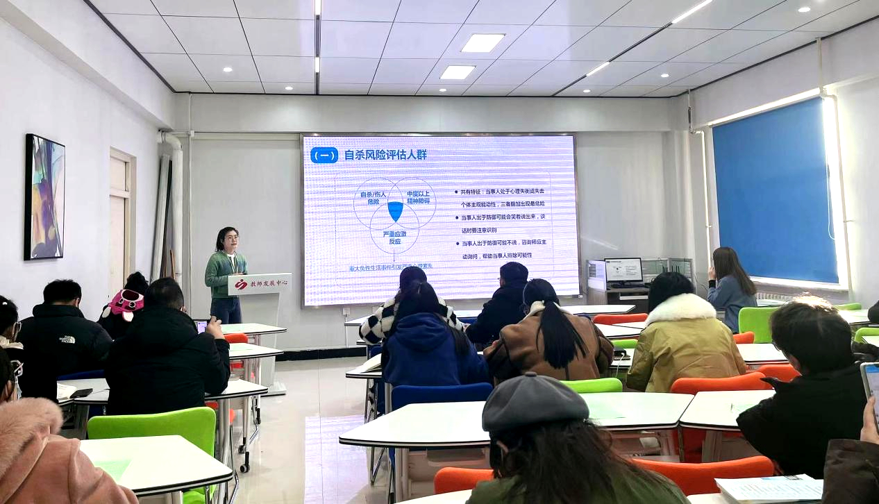 石纬老师讲解了大学生心理危机的评估与干预的部分,主要从自杀风险评估人群的共同特征、自杀评估的内容与表达方式、评估自杀的近端高危因素和自杀风险的干预与管理五方面进行详细介绍,并举例说明多个表达方式,最后对辅导员们提出要求。
