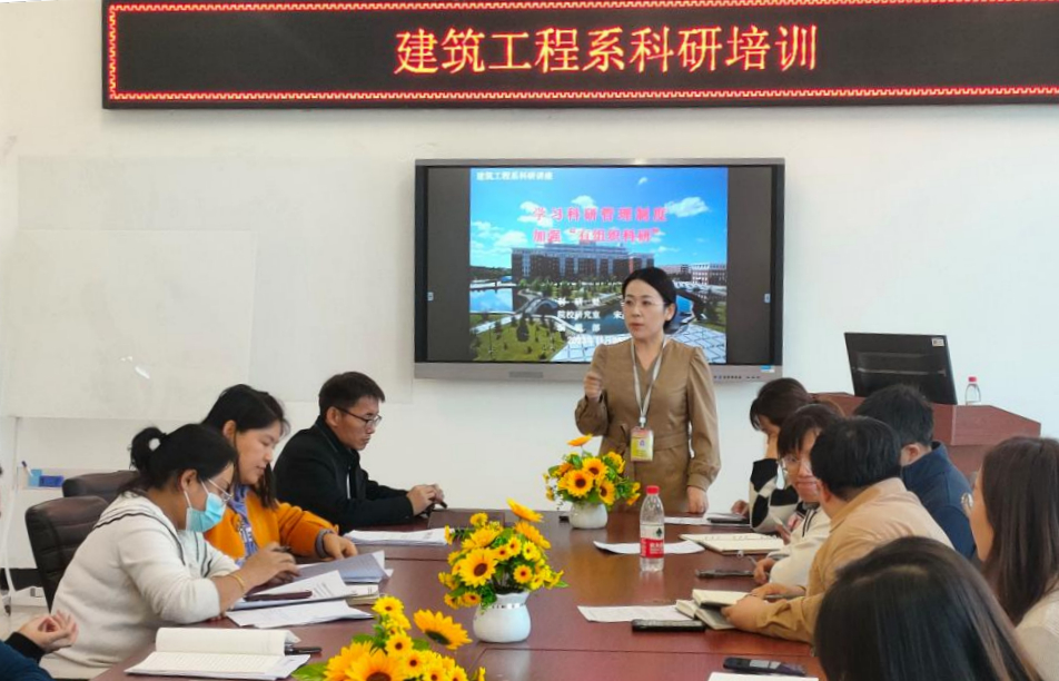 为推进建筑工程系学科建设,提升全系教工科研意识与研究水平,增强学术规范和学术道德意识,促进教师科研水平持续高质量发展。近日,建筑工程系特邀请科研处宋庆永老师在2号教学楼2409室开展科研工作管理办法解读及科研培训,本次活动由系教学副主任郝丽娜主持,系党总支书记、副主任徐明出席,建筑系全体教师参加。