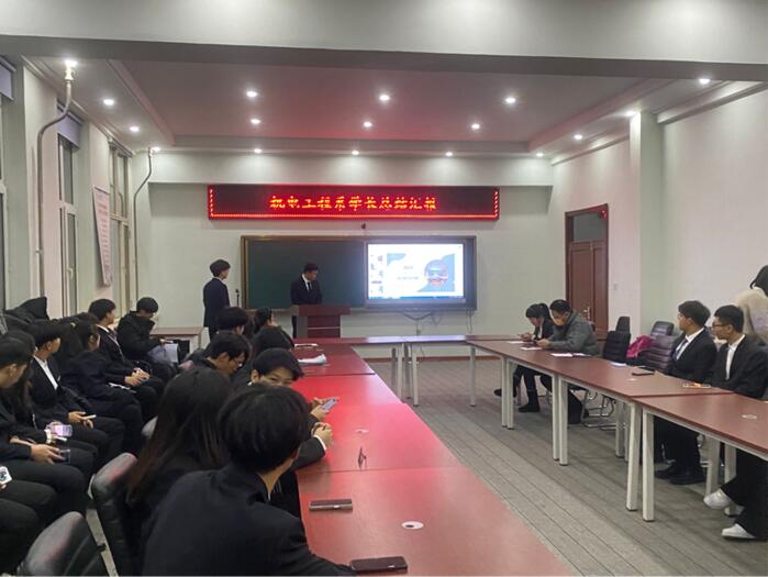12月8日下午,机电工程系在图书馆608室召开学长总结汇报会,系党总支副书记郭明敬、6名新生辅导员及全体新生班学长参加。